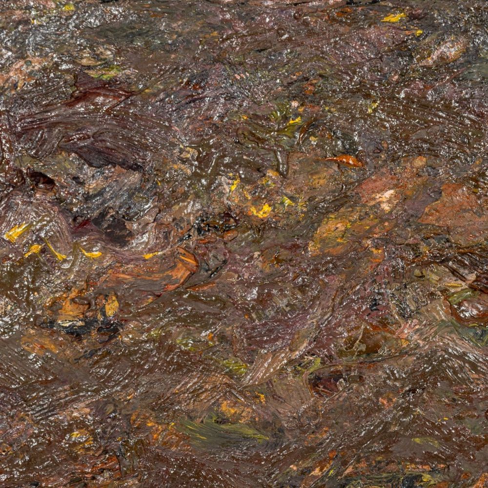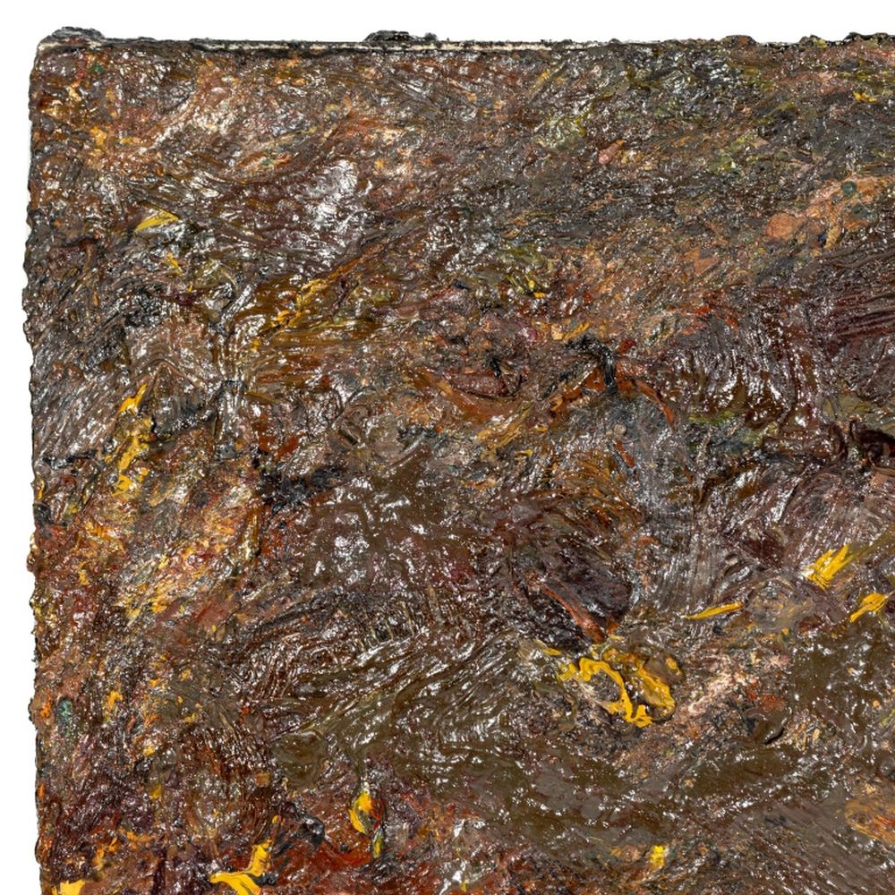 Andy Miller (American, b. 1950), Abstract Composition, Oil on Canvas, impasto details, dark brown with red and green hues, unsigned, artist's studio stamp to verso, unframed. 12.25" H x 16.25" W.  Provenance: From the Studio of Andy Miller. Keywords: Painting, Works on Canvas, Abstraction, Abstract Expressionist, Abstract Expressionism, AbEx, Post-War and Contemporary Art, Polychrome, 20th Century School, Circle of Milton Resnick and Pat Passlof