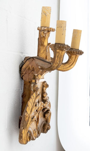 Baroque Style Giltwood Candelabra Sconces, Pair