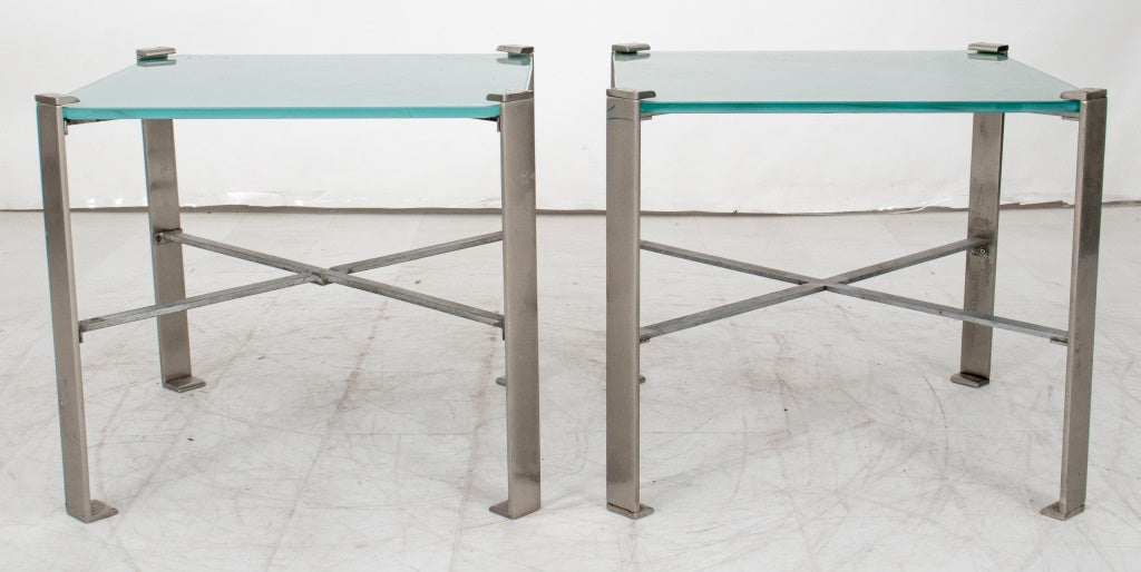 Donald Deskey Style Art Deco Steel Side Tables, Pair