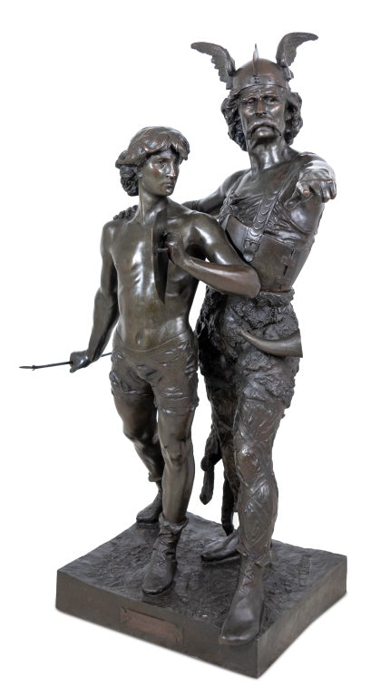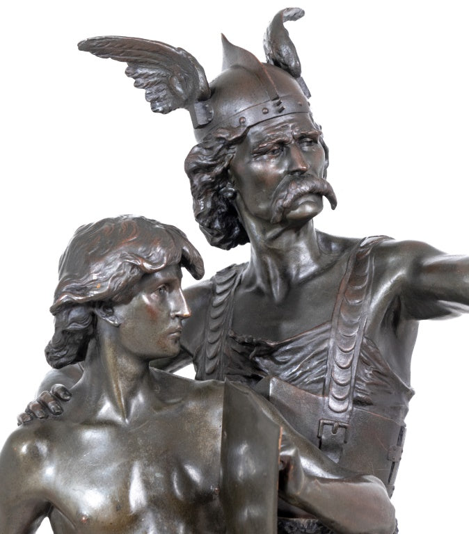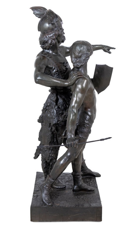 Keywords: French Art, European, Continental School, Statue, Bronzier, Belle Epoque, French Romanticism, Figural Group, Figurative, Semi-Nude Man, Kings of France, Royalty, Vercingetorix, Parenting, Father and Son, Youth, Fin de Siecle, Gilded Age, 19th Century Art, Antique, Decorative Arts.