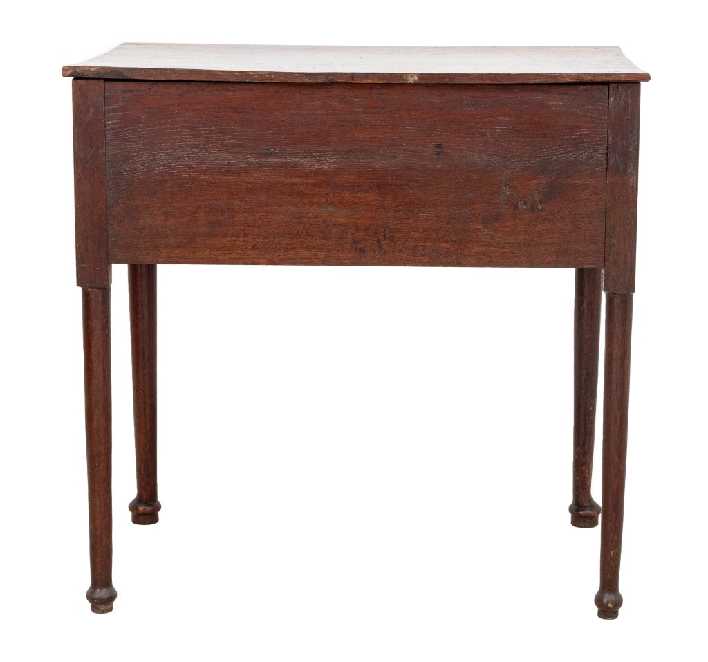 Georgian Style Oak Lowboy, three short drawers above two, with brass pulls. 29.25" H x 30" W x 19.75" D. Provenance: From a 333 East 75th Street Estate. Keywords: Furniture, Chest of drawers, Writing desk, Storage, Dresser, Lamp table, Interior design, Decorative Arts