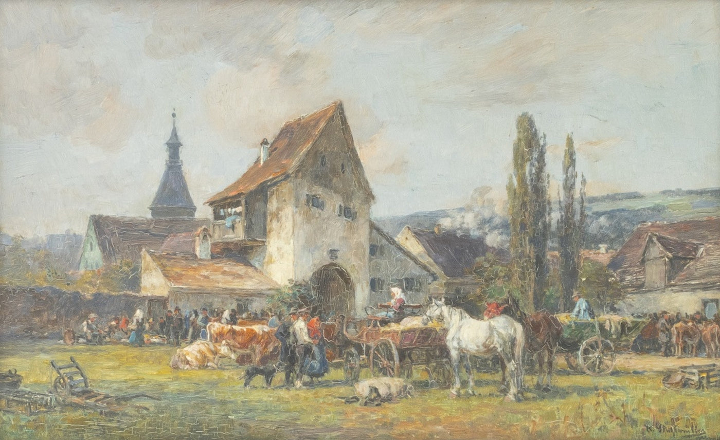 Karl Stuhlmuller "Market Scene" Oil on Panel