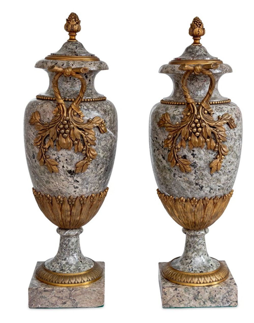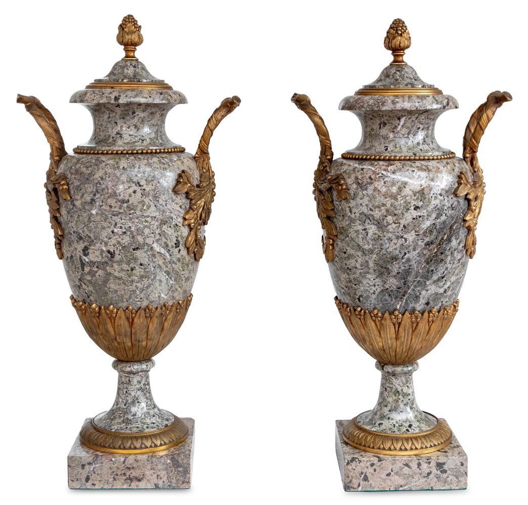 Louis XVI Style Gilt Bronze and Granite Urns, Pair