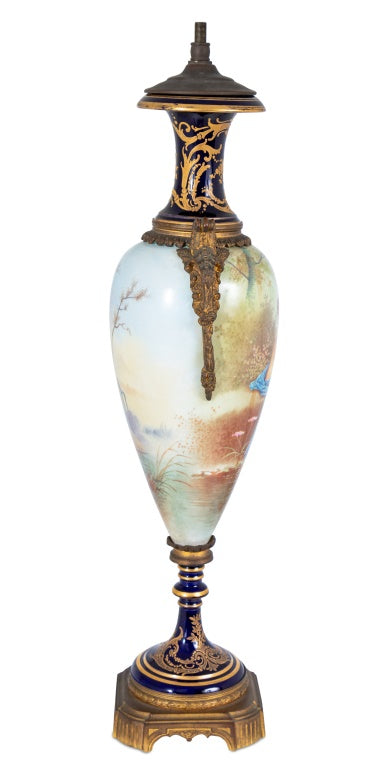 Sevres Blue Ground Ovoid Vase Mounted as Lamp